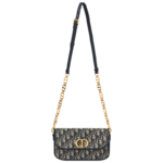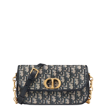 The 30 Montaigne Avenue bag enhances the hallmark line with a timeless and elegant style. Crafted in blue Dior Oblique jacquard. the rounded flap with delicate curves is punctuated by a gold-finish metal CD clasp inspired by the seal of a Christian Dior perfume bottle. The design is completed by other details. like the 30 Montaigne signature embossed on the back and the signature chain alternating gold-finish metal and tonal enamel links that match the leather. The gusseted bag features a spacious and refined silhouette that can be carried by hand. worn over the shoulder or crossbody.