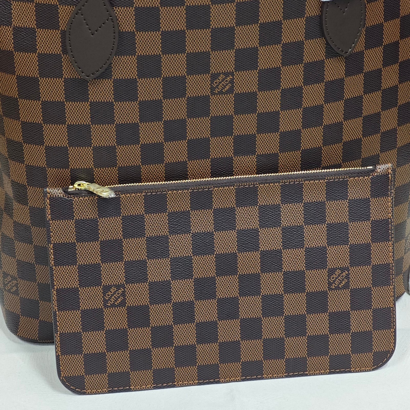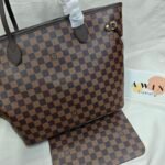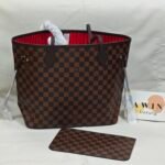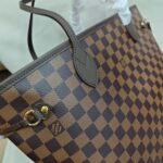 Louis Vuitton Neverfull Checkered pattern, classic print, canvas and leather combination, tote bag, handbag, shoulder bag, brown, women’s style