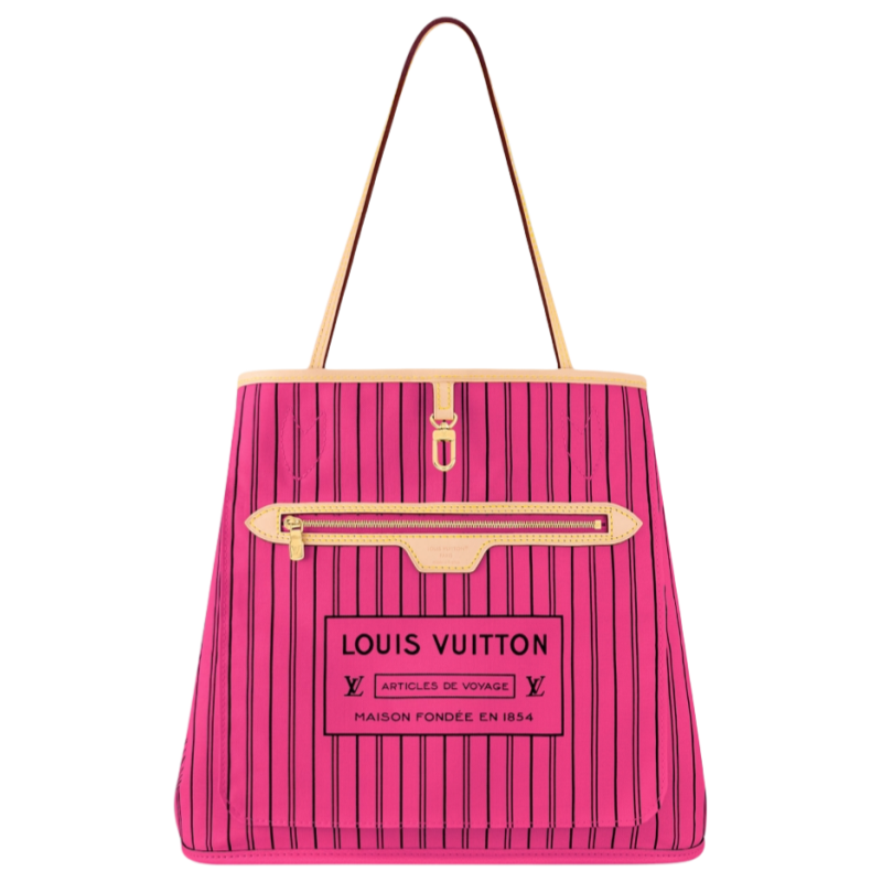 Offered in a new reversible design. the iconic Neverfull Bandoulière Inside Out MM tote is a timeless choice. This edition is made from Monogram canvas and has a brightly colored textile that's patterned with stripes. It also features a removable strap that allows for shoulder carry. Use the side hooks to transform it into a hobo silhouette.